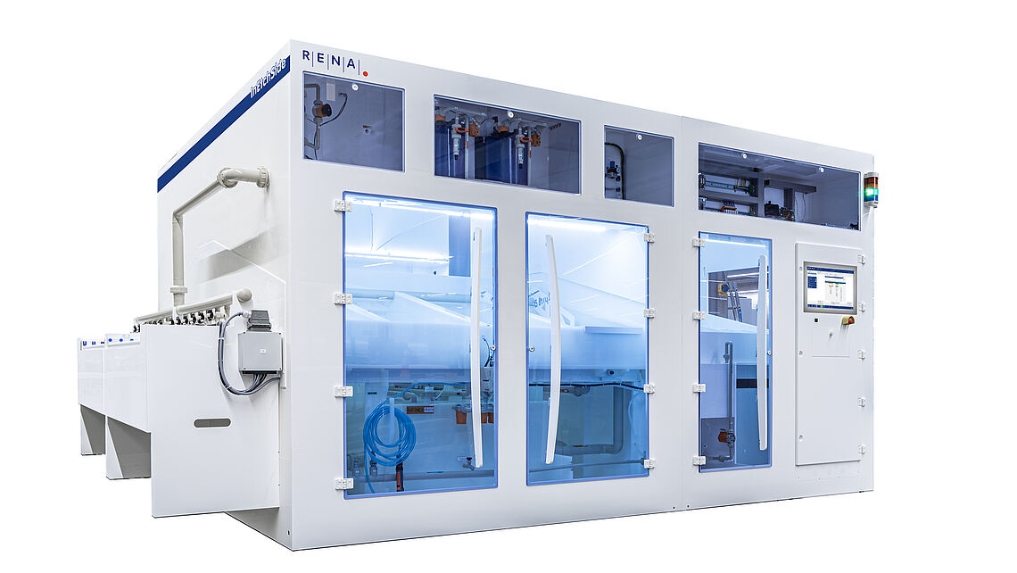 The patented RENA Function Layer (RFL) introduces a groundbreaking method for protecting the upper side of a solar cell while the other-side is treated by chemistry. By applying a water or liquid layer to shield the upper surface, the process ensures superior integrity of the covered side without compromising the performance of the processed surface. The result: enhanced cell durability, improved yield rates, and optimized manufacturing processes. Since its launch, over 630 machines equipped with this technology have been deployed worldwide, demonstrating its reliability and industry trust. The technology is still mandatory to be used in machines for PERC-processes, and the latest TOPCon processes, as in the RENA InEtchSide to this day.