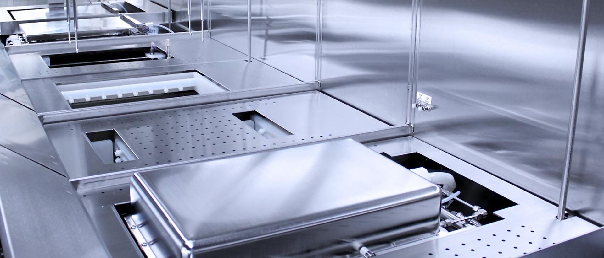 It`s modular design allows for customized and process sequences and easy configuration. Multi-step processing in specialized process tanks, like ultrasonic and megasonic tanks, cascades or quick dump rinsing tanks can be performed according to the process requirements. Dry-in and dry-out with various drying solutions as well as interfaces like FOUP, FOSB and SMIF are mandatory.